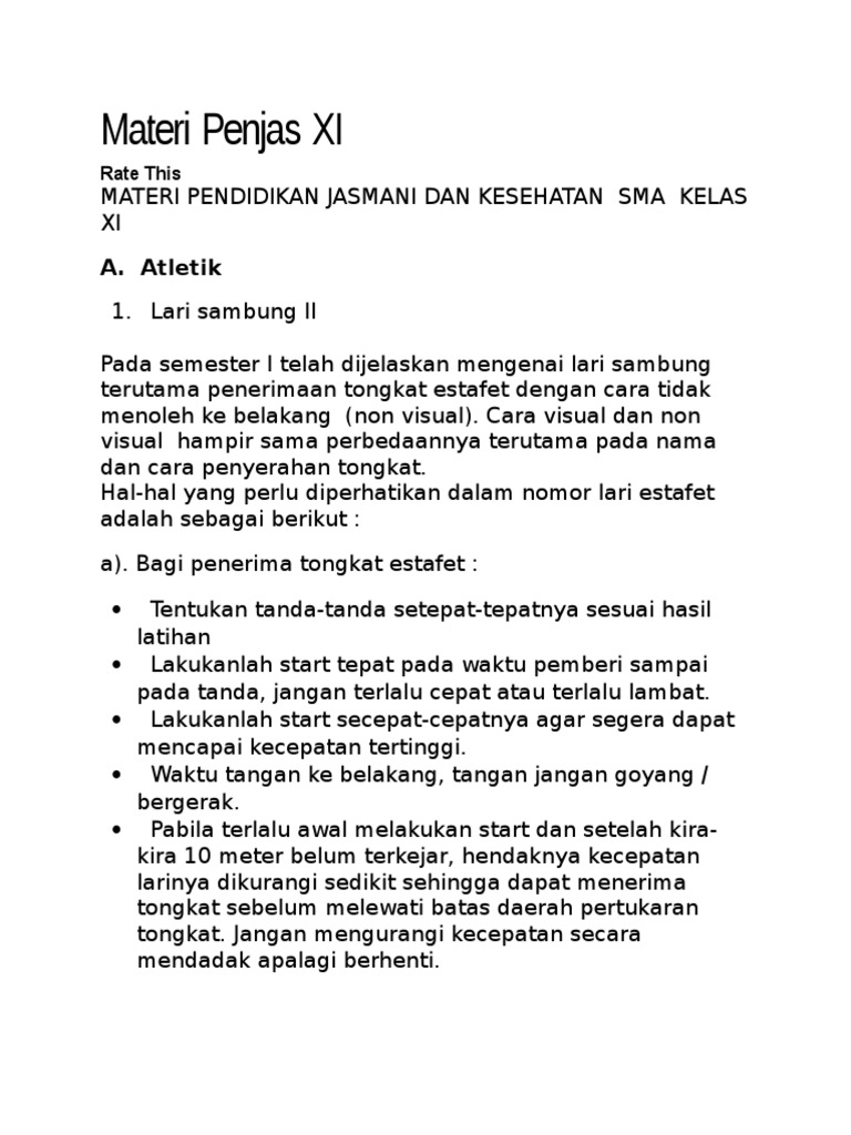 Materi pjok kelas 11 semester 2 guru ilmu sosial ringkasan materi penjaskes kelas xi tahun ajaran 2019 2020 smk muhammadyah 7 gondanglegi pdf download gratis materi renang pengertian sejarah manfaat teknik macam gaya Pada kesempatan kali ini, admin akan membagikan materi baru nih. Kebugaran jasmani merupakan bagian dari total fitness. Jadi, lebih efektif jika anda mengamati ringkasan atau rangkuman materi penjaskesnya saja. Lembing terdiri dari tiga bagian, yaitu mata lembing (kepala), badan lembing, dan tali pegangan lembing.